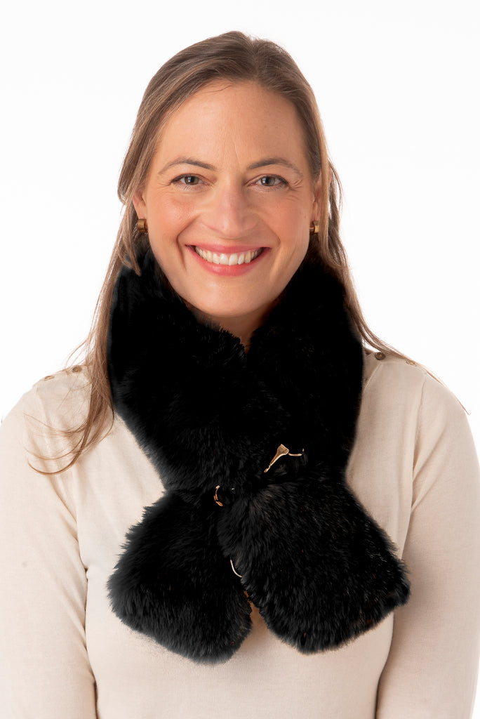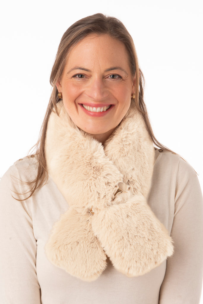 Ambrah Natural Grey Fur Pom Pom Scarf