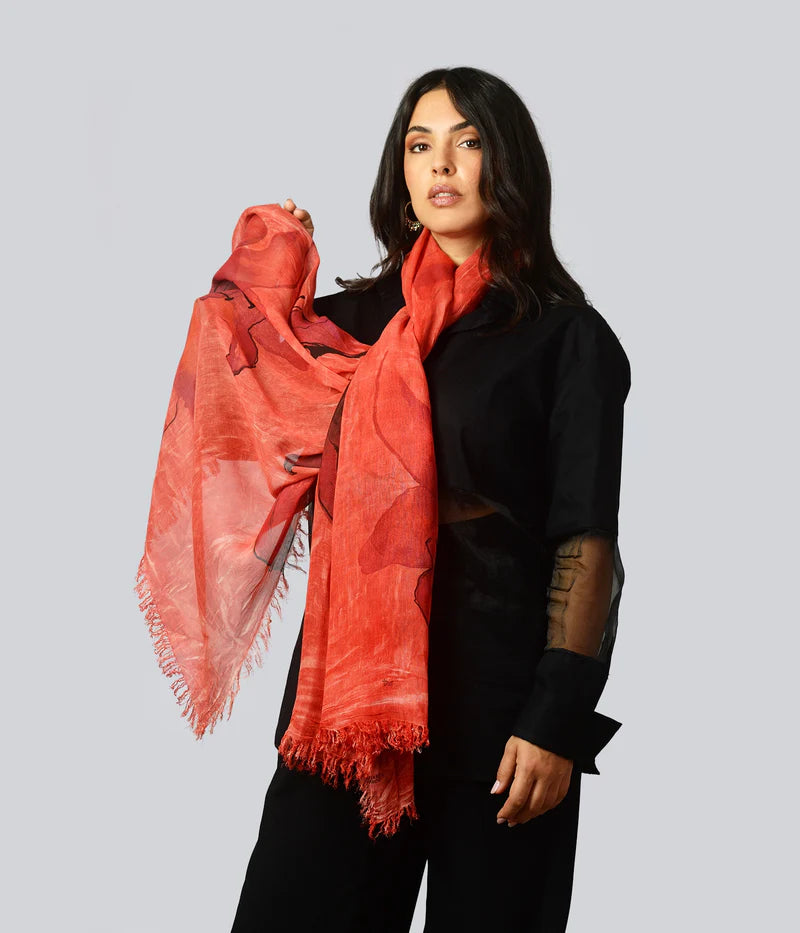Our new bamboo scarves with designs from artist collections are a beautiful addition to our accessories collection. Flowers, such as roses in delicate tones, are characterized by overlapping brush strokes that enhance their beauty, making each scarf romantic and unique. A beautiful range of scarves made of bamboo yarn, born from the idea of combining art and nature.