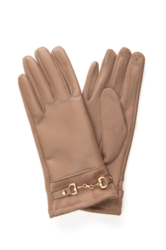 A classic looking glove in faux leather and suedette, in a range of colours and with smart snaffle detailing, the perfect addition to your winter accessories collection.   A screen touch finger means you can use a mobile phone whilst wearing.