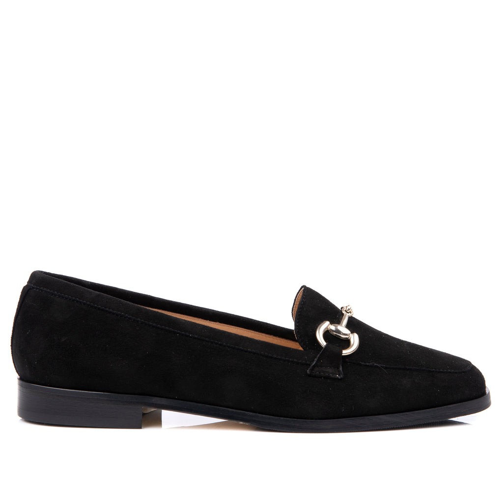 A sleek and stylish loafer for this season. The Roma is crafted from the softest black suede and is finished with a classic gold snaffle.
