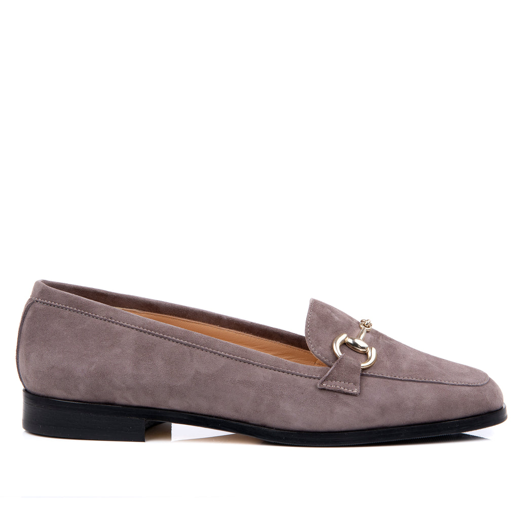 A sleek and stylish loafer for this season. The Roma is crafted from the softest taupe suede and is finished with a classic gold snaffle.