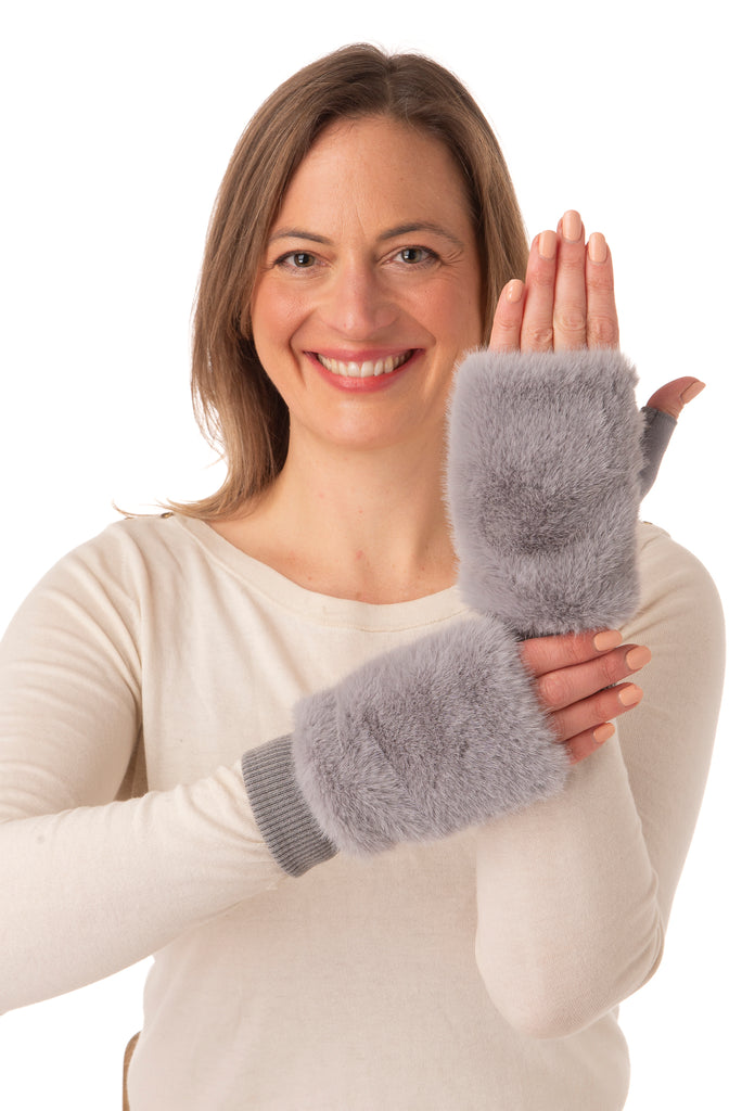 Luna Grey Faux Fur Fingerless Glove