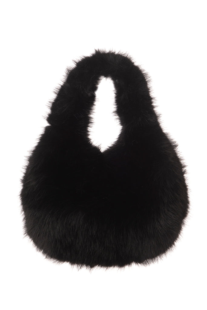 Lucette Black Faux Fur Slouch Bag