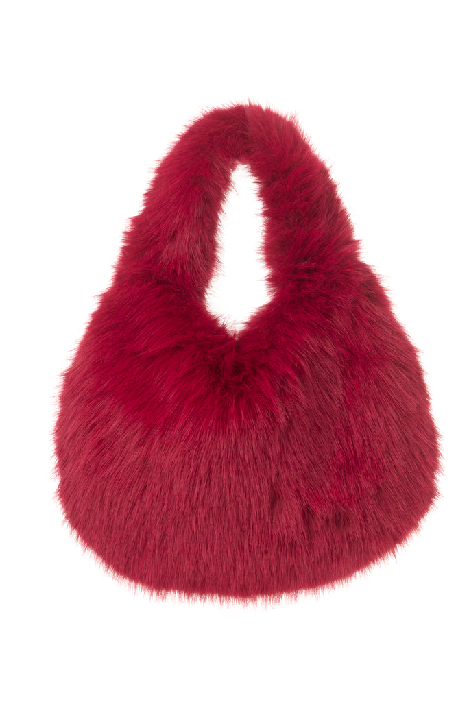 Lucette Burgundy Faux Fur Slouch Bag