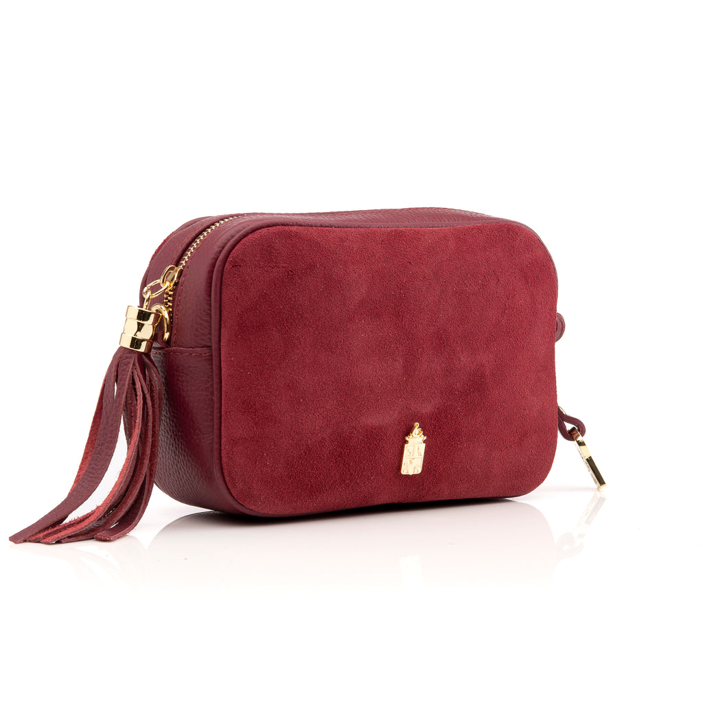Caz Suede Burgundy Cross Body Bag with Tassel