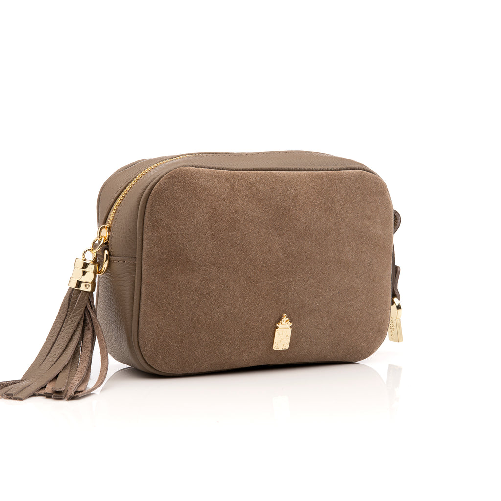 Caz Suede Winter Taupe Cross Body Bag with Tassel