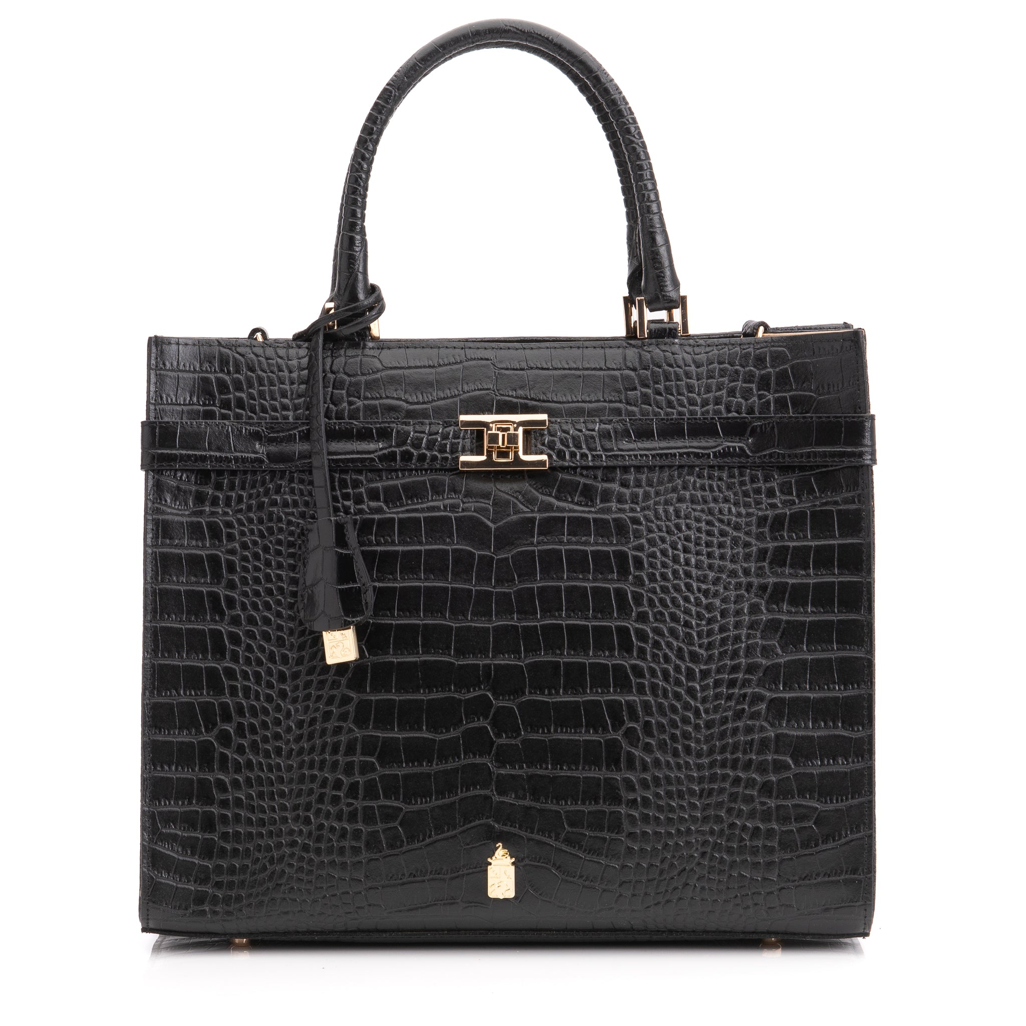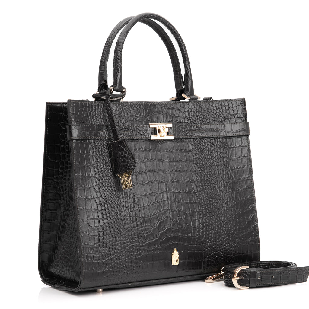 Coco Black Croc Stamped Leather Handbag