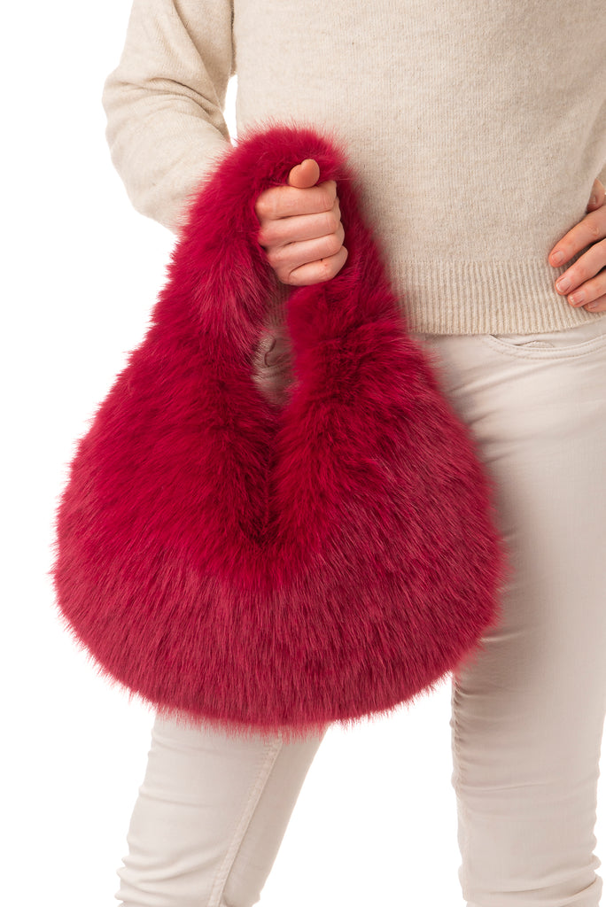 Lucette Burgundy Faux Fur Slouch Bag is backordered and will ship as soon as it is back in stock.