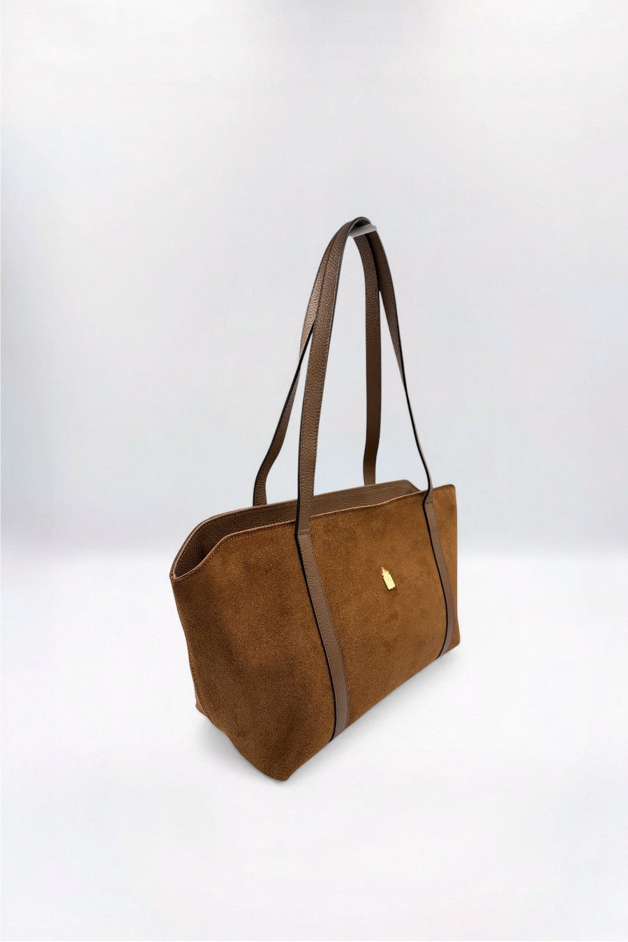 A beautifully crafted bag in Italian tan suede. A chic suede tote that will carry life's essentials.