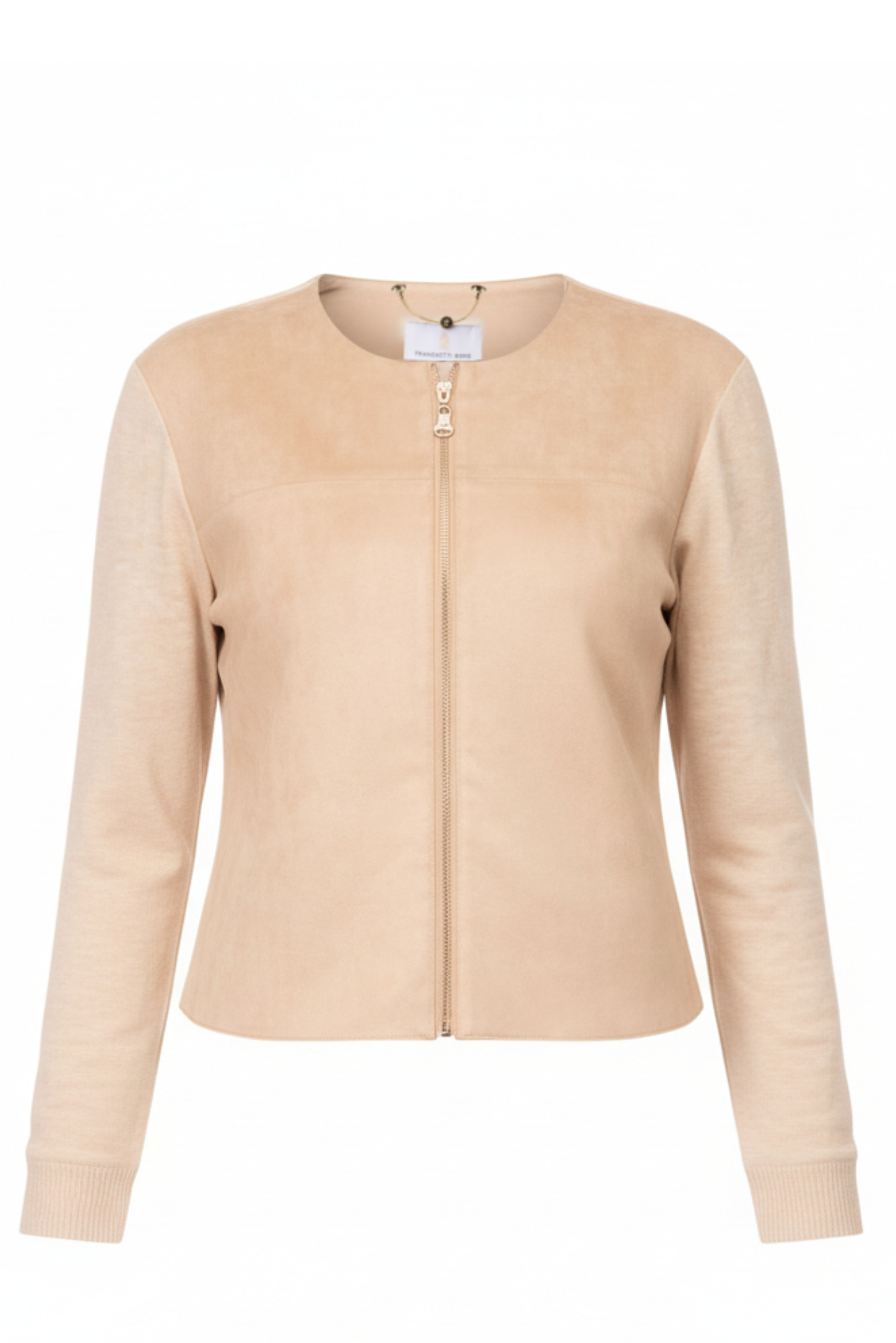 A beautiful piece for Spring, the Gianella suedette jacket with gold zip detail is a lovely piece to add to your wardrobe. Team with jeans or pop over a spring dress for a chic extra layer.