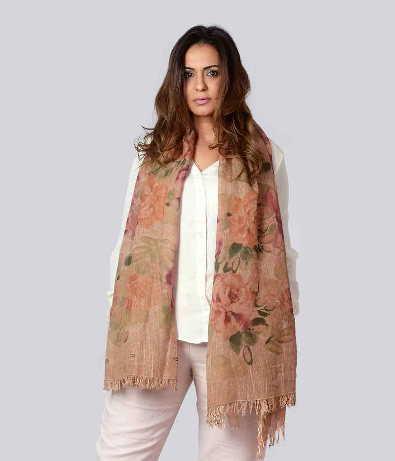 Our new bamboo scarves with designs from artist collections are a beautiful addition to our accessories collection. Flowers, such as roses in delicate tones, are characterized by overlapping brush strokes that enhance their beauty, making each scarf romantic and unique. A beautiful range of scarves made of bamboo yarn, born from the idea of combining art and nature.